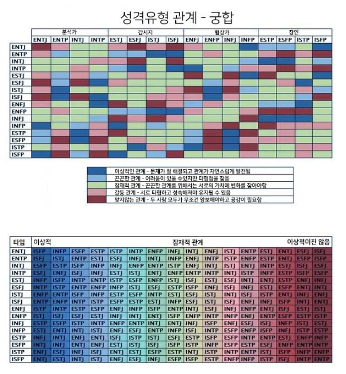 MBTI의 궁합표는 네티즌이 만든 엉터리 표입니다.